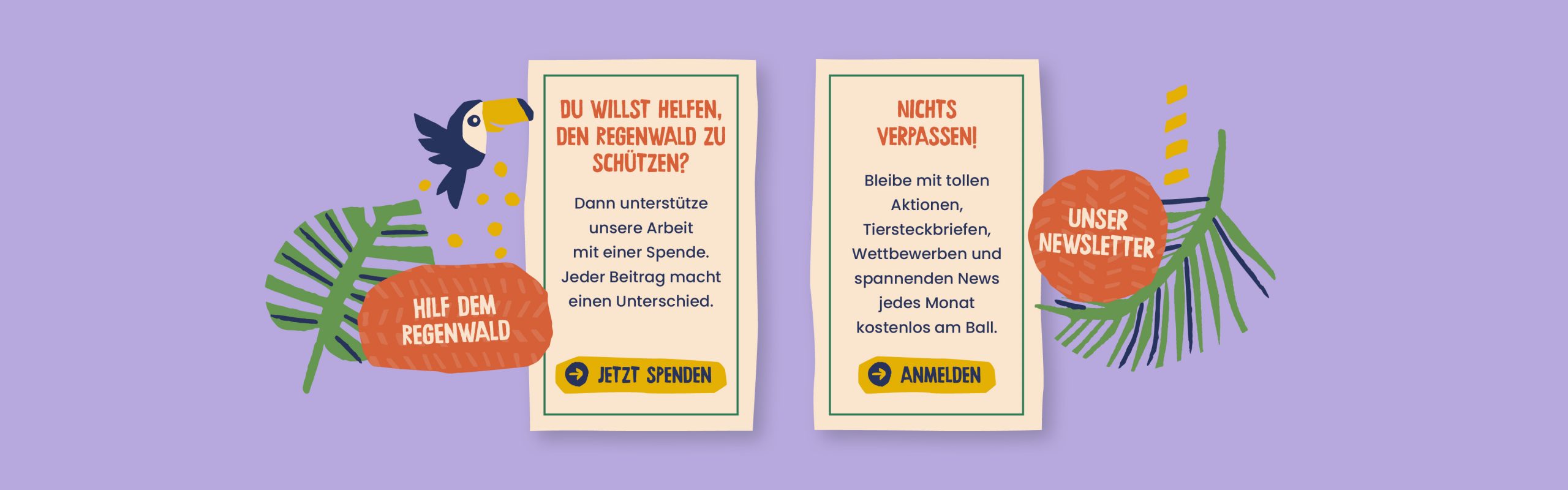 Wir unterstützen den Abenteuer Regenwald e.V. beim Design-Refresh ihrer Umweltbildungsseite abenteuer-regenwald.de. Das Grunddesign der bekanntesten Kinderwebseite zum Thema Regenwald im deutschsprachigen Raum gibt es bereits. Auf dieser Grundlage denken wir das Corporate Design weiter und modernisieren den Look durch eine Neugestaltung des Logos, Anwendung von neuer Typografie, Erweiterung der Farbpalette sowie dem Ausbau von illustrativen Gestaltungselementen und individuellen Icons.