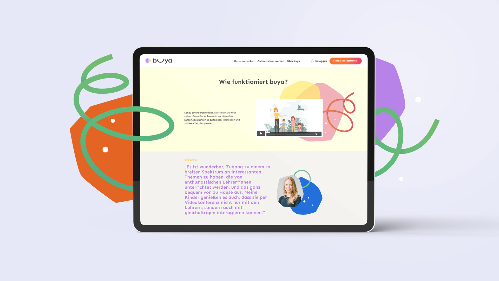 Wir unterstützen buya bei ihrem ReDesign und kreieren gemeinsam eine Brand Identity, die die Themenvielfalt und Werte der digitalen Bildungsplattform für Kinder widerspiegelt. Kern der neuen Markenidentität sind Neugierde, Kreativität und Begeisterung, die wir durch die Gestaltung unterschiedlicher Designelemente greifbar machen. Neben dem neuen Logo und der neuen Typografie entstehen eine einzigartige Farbpalette, handgezeichnete Icons, illustrative Designelemente und ein Brand Manual.