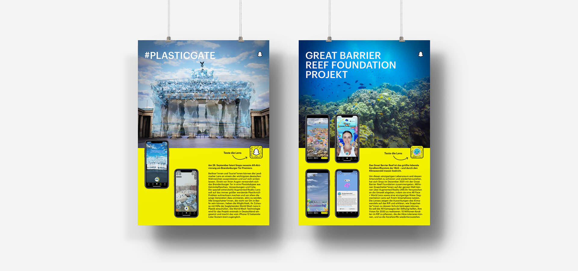 Anlässlich des Snapchat Launchs der AR-Experience #plasticgate, kreieren wir die Poster zur Eröffnungsausstellung und unterstützen das Team mit Headlines für die dazugehörige OOH-Kampagne im Berliner Regierungsviertel. Außerdem dürfen wir den 3D-Map-Marker in der Snapchat App gestalten, der am Tag der Veranstaltung am Standort Berlin auf der Map aufrufbar ist und durch seine auffällige Gestaltung auf die Aktion aufmerksam macht.