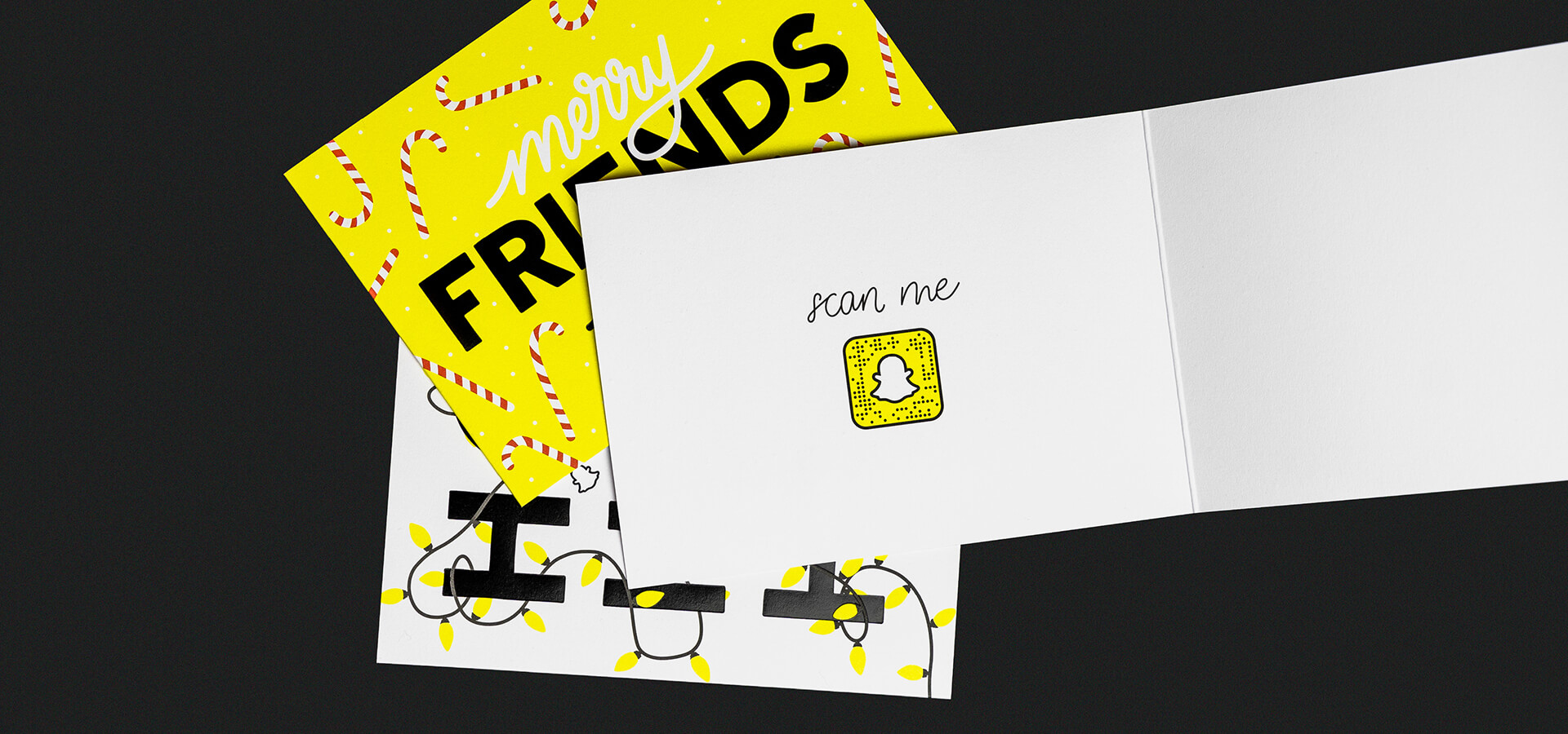 Wir konzipieren für Snapchat Deutschland eine interaktive Christmas-Box. Neben der gemeinsamen Konzeption der Inhalte, übernehmen wir das Layout inkl. Box-Cover mit Handlettering sowie aller darin enthaltenen Bestandteile: Klappkarten, Geschenkpapier-Layouts, Inlay, Banderole und ein Sticker-Set in der Snapchat CI.